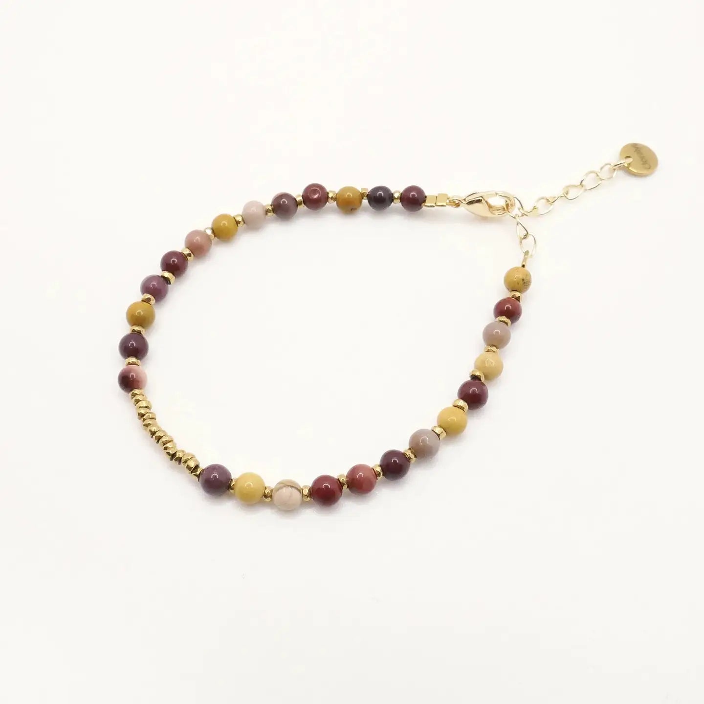 Laissez-vous séduire par le bracelet Alix, un bijou délicat composé de pierres naturelles soigneusement sélectionnées. Ses perles rondes en Mokaïte d’Australie, aux nuances chaudes de brun, ocre et mauve, sont associées à de mini perles en Hématite dorée, apportant éclat et élégance. Un bracelet fin, équilibré et facile à porter au quotidien.