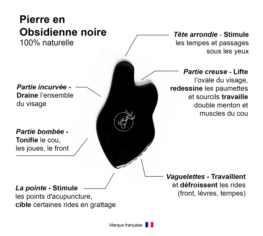 Découvrez le Gua Sha Ultimate Lift en Obsidienne Noire, un outil professionnel conçu en collaboration avec la facialiste française Delphine Langlois. Sa forme exclusive et ses courbes étudiées permettent de travailler en profondeur tous les contours du visage et du cou.