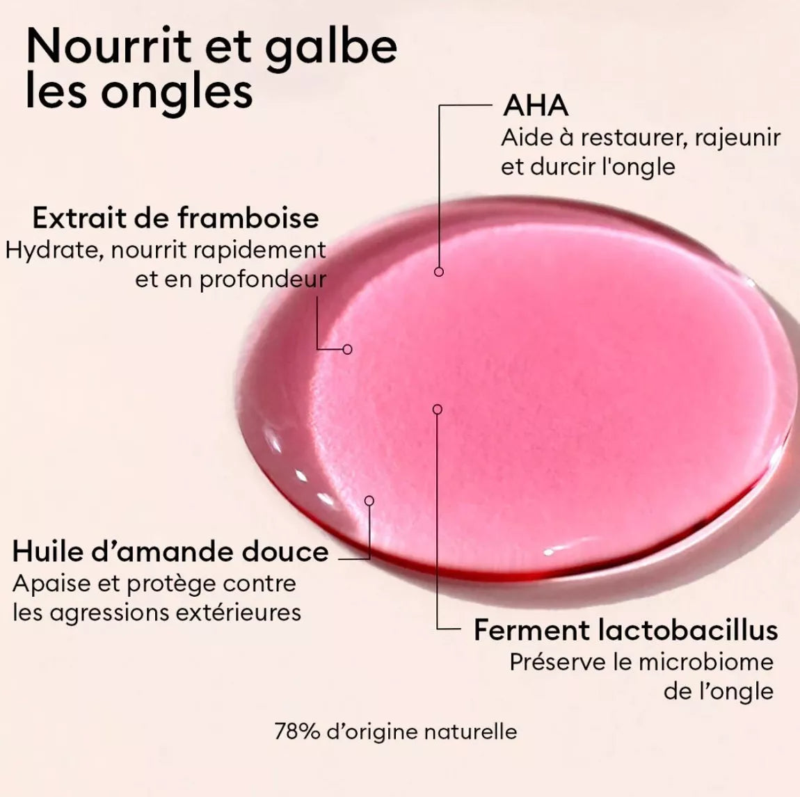 Formulé avec 96 % d’ingrédients d’origine naturelle, ce soin vegan et clean allie performance et respect de l’ongle.