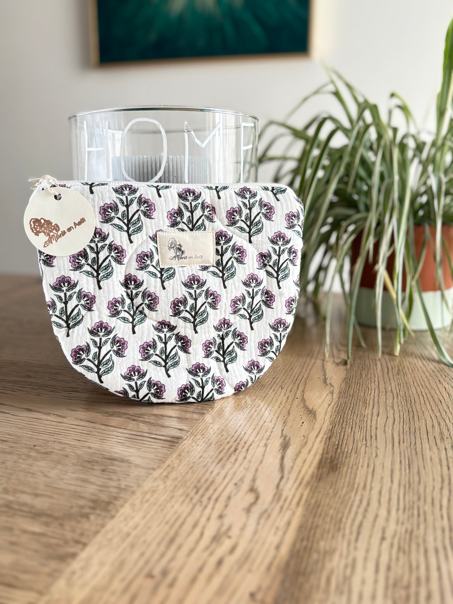 Chaque trousse est confectionnée à la main par Marie en Août dans son atelier français, avec des tissus choisis pour leur beauté et leur texture unique.