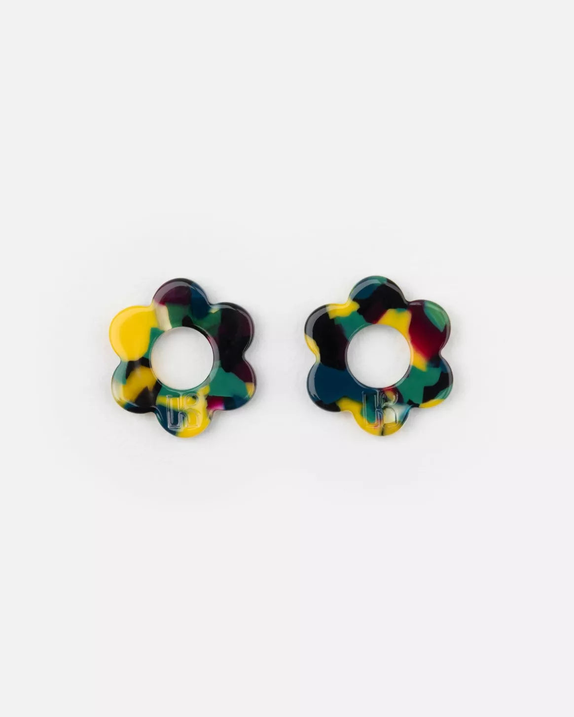 Les pendentifs et boucles d’oreilles sont réalisés en acétate de cellulose, une matière naturelle issue de fibres végétales, de fruits ou de copeaux de bois — résistante, durable et respectueuse de l’environnement.