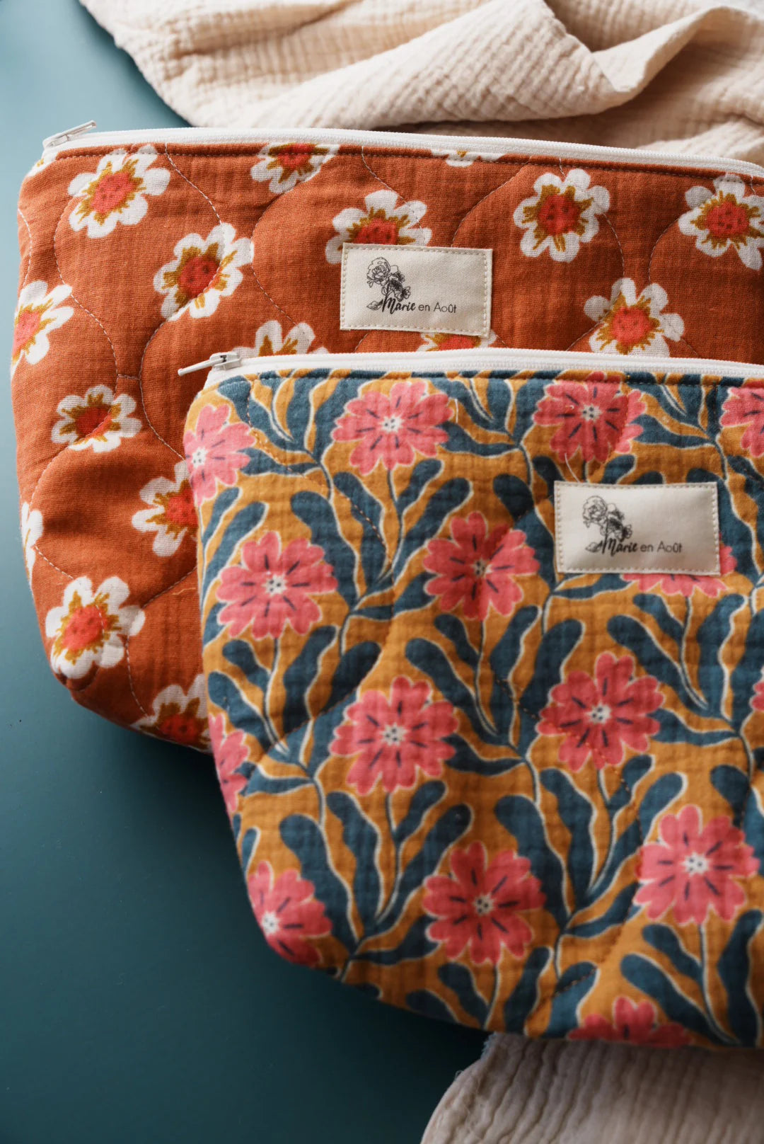 Marie imagine et confectionne à la main des pièces textiles à la fois esthétiques, pratiques et responsables. Ses créations phares : trousses, pochettes, lingettes lavables, serviettes ou encore accessoires zéro déchets, sont pensées pour accompagner le quotidien avec douceur et originalité.