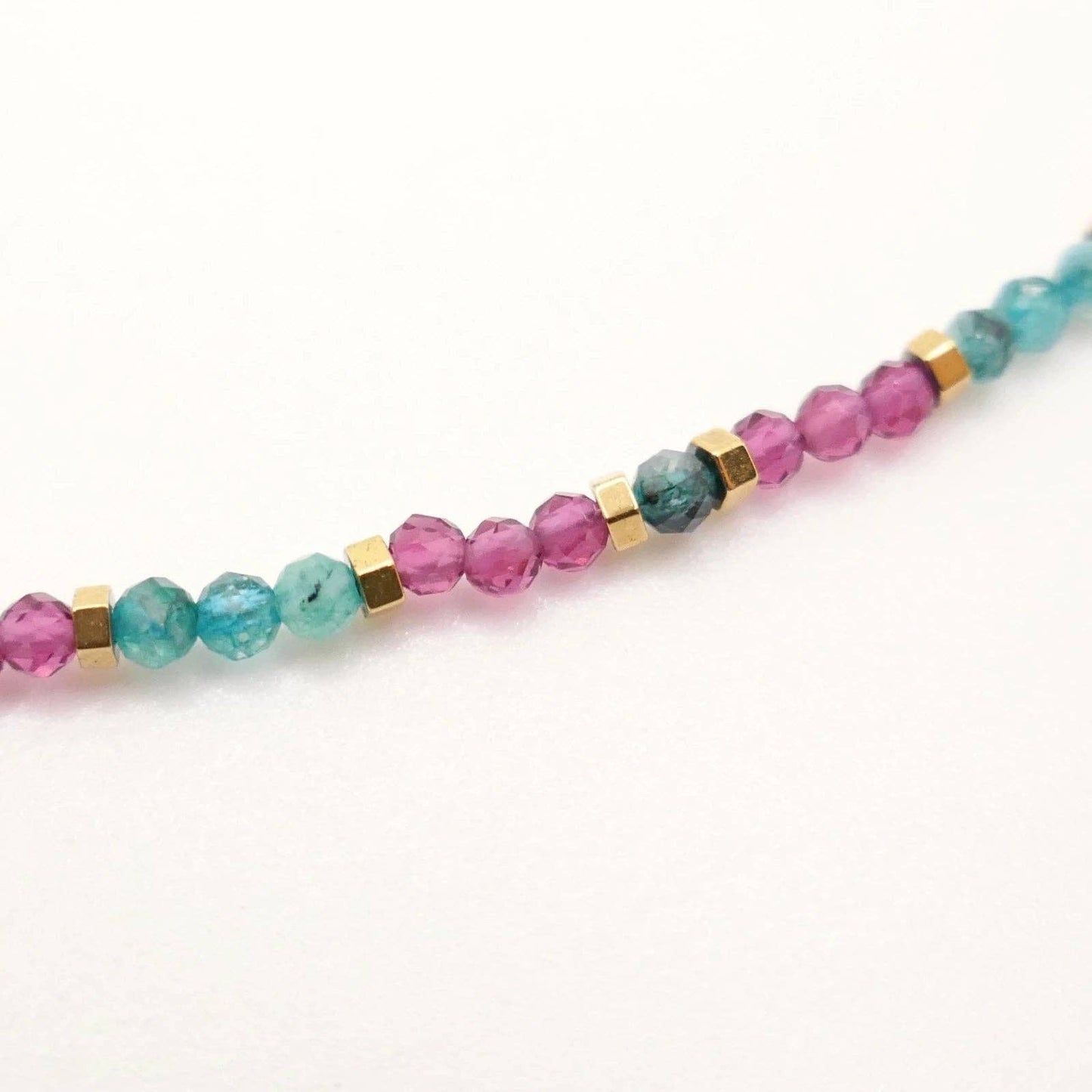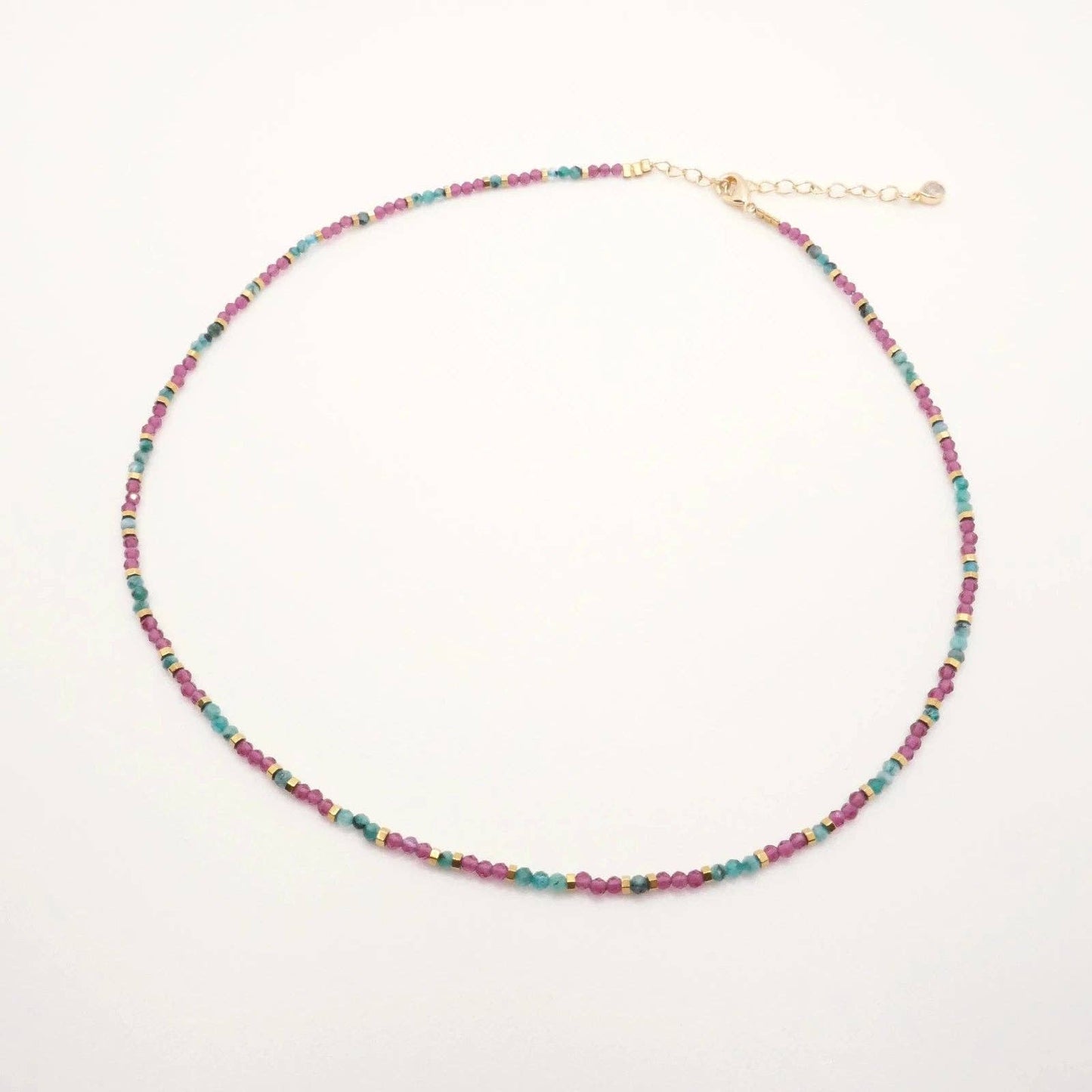 Le Collier Gemma de Cloralys allie finesse et éclat coloré grâce à une sélection de pierres fines facettées.